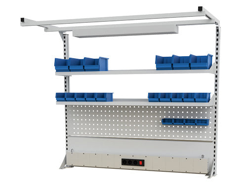Werkbankaufbau 1500 mm, Multi-Wand-Aufbau mit Beleuchtung, umfangreiches Zubehör, Energiekanal