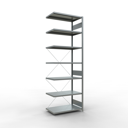 SCHULTE Anbauregal, Fachbodenregal Stecksystem MULTIplus250, 3000 x 1000 x 600 mm (HxBxT), 7 Fachböden, Kreuzstrebe, verzinkt