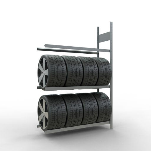 Bei Räderregalen bilden je zwei Reifentraversen eine Lagerebene. Diese sind wie Längenriegel in die T-Profile einzuhängen. Reifenregale eignen sich zur materialschonenden Lagerung von Rädern und Reifen.