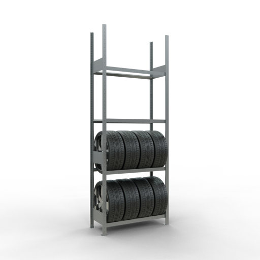 Bei Räderregalen bilden je zwei Reifentraversen eine Lagerebene. Diese sind wie Längenriegel in die T-Profile einzuhängen. Reifenregale eignen sich zur materialschonenden Lagerung von Rädern und Reifen.